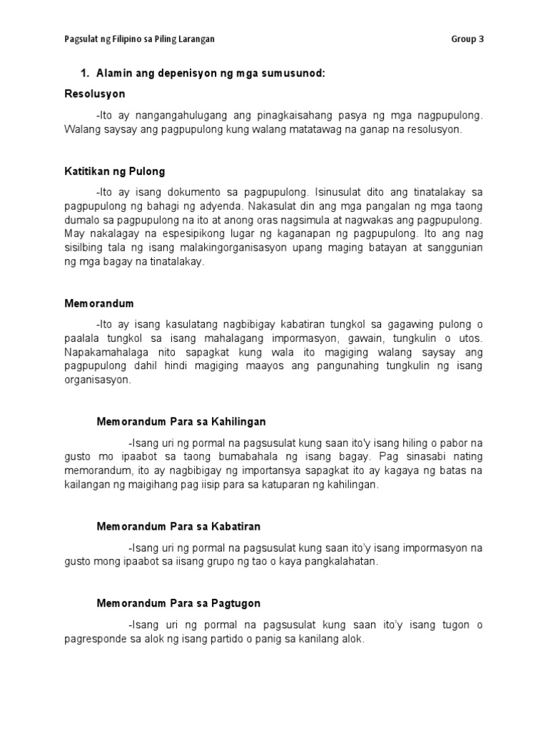 Sa mga pormal na pagpupulong tulad ng mga miting sa barangay o pagtitipon ng mga magulang at guro sa eskwelahan may mga. Maraming mga organisasyon ang gumagamit ng isang. 3Ano-anong mahahalagang elementong kailangan para sa isang maayos na pagpupulong 4 Ano ang nilalaman ng isang memo a memorandum.